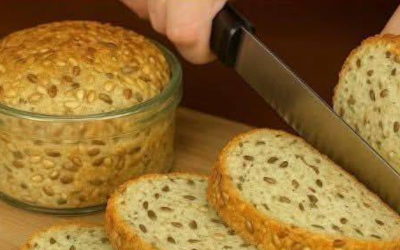 Io non mangio farina bianca! Pane in barattolo pronto in un minuto! Senza lievito, senza zucchero. Ingredienti: 3 uova, 1 tazza (240 ml) di latte, 2 cucchiai di semi di lino, 2 cucchiai di psillio.