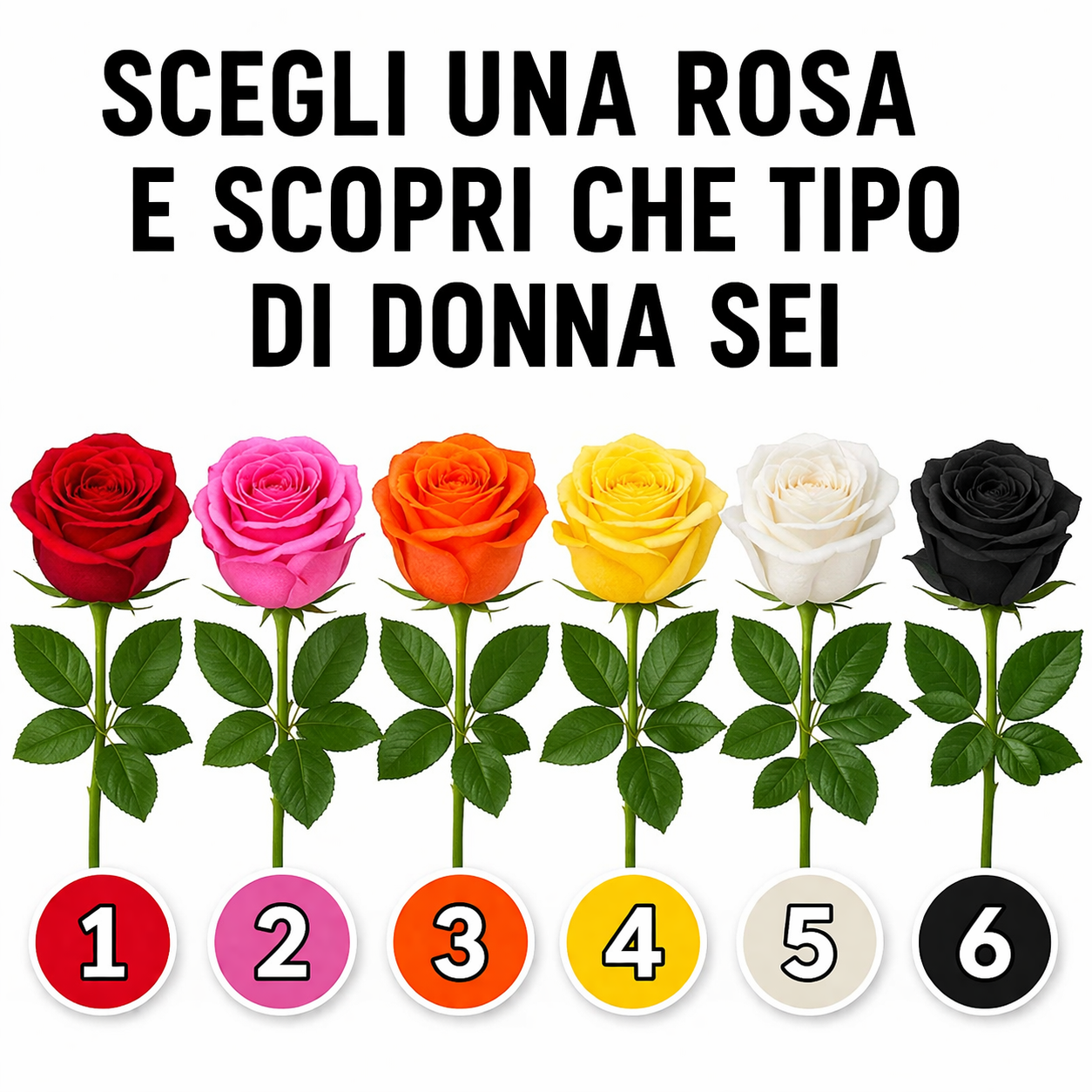 A volte le scelte che facciamo, anche quelle più semplici, possono riflettere aspetti più profondi della nostra personalità. I colori, in particolare, spesso si collegano alle nostre emozioni, ai nostri valori e al modo in cui vediamo il mondo. Prenditi un momento, osserva le rose nell'immagine e scegli quella che ti attrae di più. La tua scelta potrebbe rivelare qualcosa di interessante sul tipo di donna che sei.