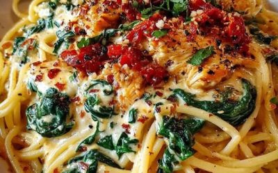 Spaghetti con spinaci e salsa cremosa di pomodori secchi Ingredienti: 340 g (12 oz) di spaghetti 2 cucchiai di olio…