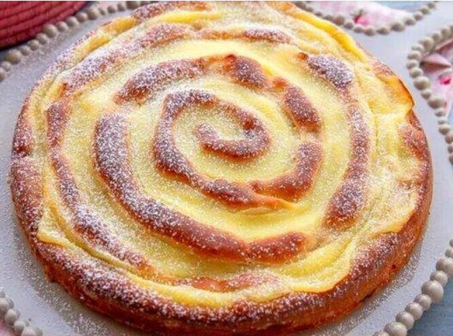 Sbattete le uova con il burro, lo zucchero e l'essenza di vaniglia per tutta la notte fino a ottenere un composto spumoso. Aggiungete gradualmente la farina, il lievito e il latte (io non misuro il latte, ma lo faccio a occhio; l'impasto non deve essere troppo liquido; un sorso è sufficiente). Versate quindi l'impasto nella tortiera e livellatelo. Disponete le mele sopra formando una corona. Preriscaldate il forno a 170 °C (ventilato). Mescolate 300 ml di latte con la crema pasticcera e distribuitela sulle mele. Cuocete per circa 25 minuti. Tutto dipende dal vostro forno. È meglio controllare la cottura con una baguette. Buon appetito!